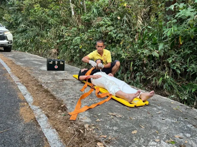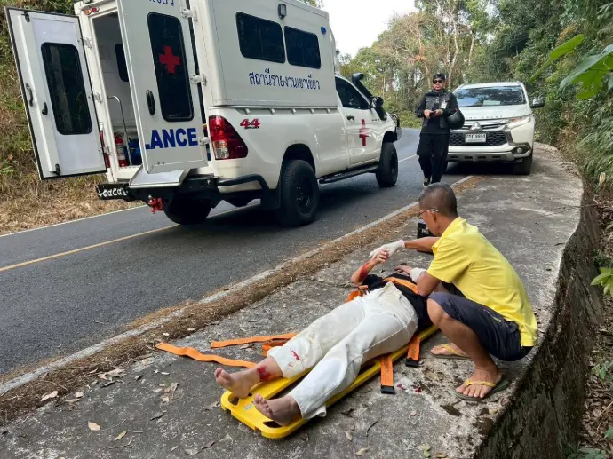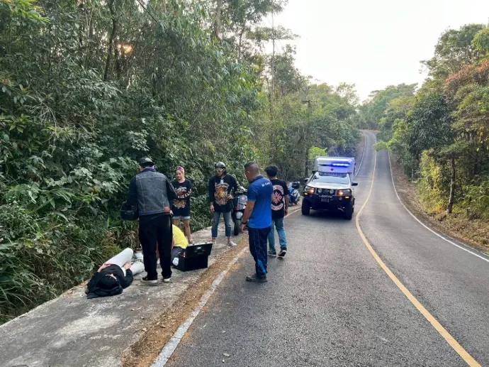 วันที่ 18 ม.ค.69 , เวลา 17.30 น. มีนักท่องเที่ยวขับรถมอเตอร์ไซค์พร้อมเพื่อนซ้อนท้าย มาแหกโค้งที่ช่องเขาขาด ใกล้ผาตรอมใจ อุทยานแห่งชาติเขาใหญ่ ได้รับบาดเจ็บรุนแรง