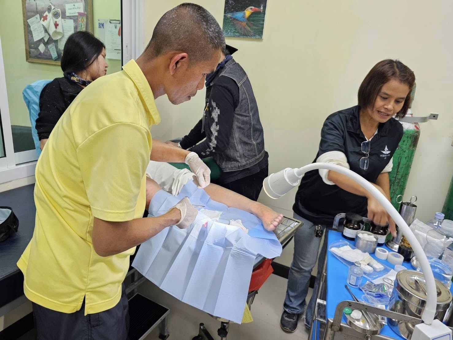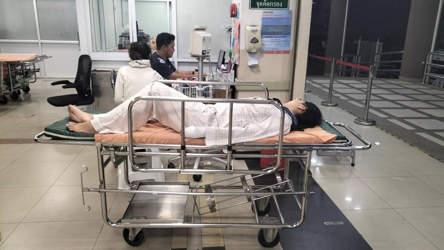 พ.อ.อ.จักราพิชญ์ อัตโน (จนท.พยาบาล มว.แพทย์ ฯ) และ พ.อ.ต.อุกฤษฏ์ นามบ้าน (พลขับรถพยาบาล) ได้เข้าทำการช่วยเหลือคนเจ็บ ณ ที่เกิดเหตุ และนำคนเจ็บไปรักษาที่ มว.แพทย์ ฯ โดยได้เย็บแผล 16 เข็ม รักษาแผลถลอก จ่ายยารักษา และเนื่องจากคนเจ็บมีอาการปวดหัวเข่ามาก จึงได้ส่งไปรักษาต่อที่ รพ.ปากช่องนานา เพื่อ x ray และรับการรักษาอื่นๆ ต่อไป