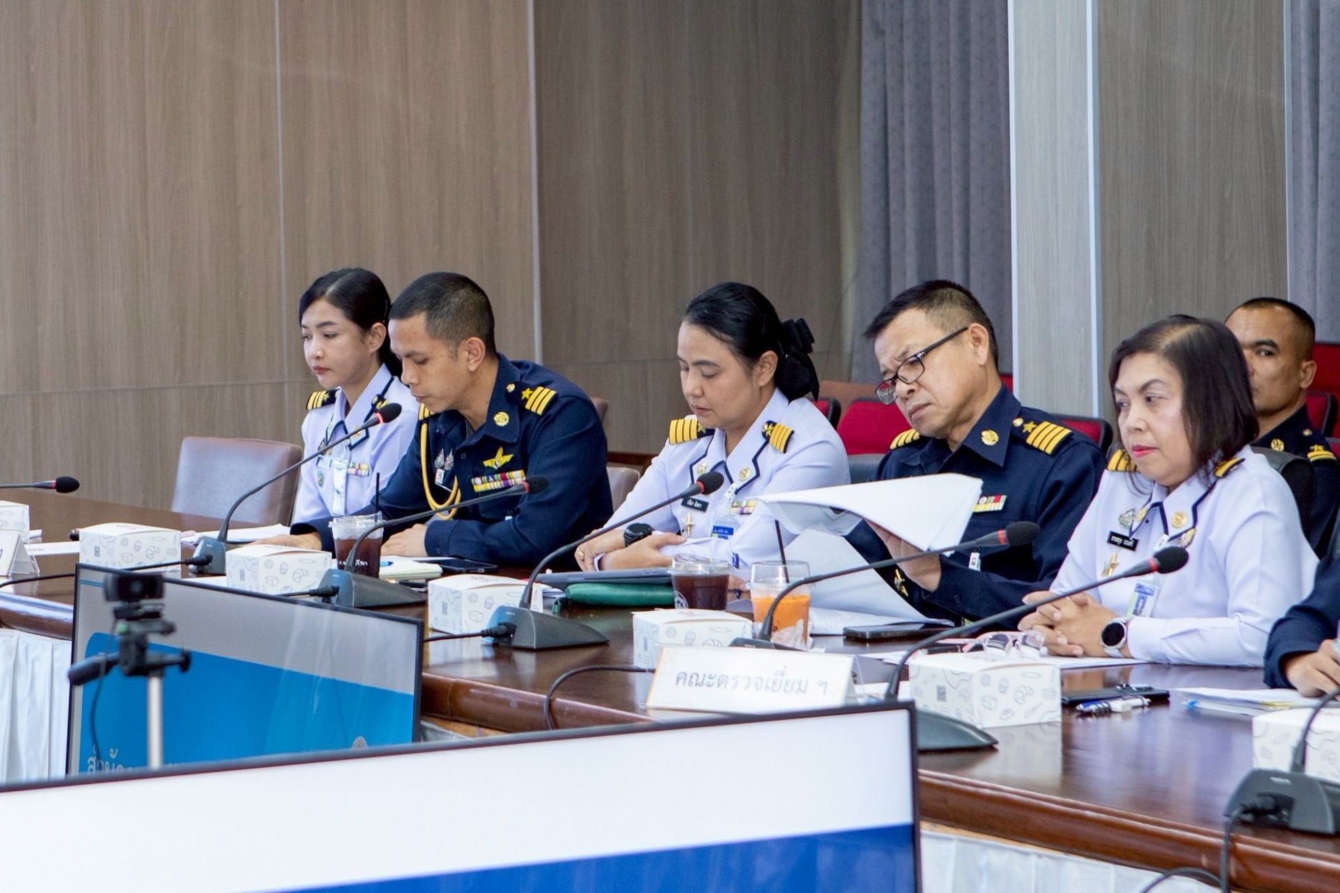 พลอากาศโท อานนท์ จารุสมบัติ เสนาธิการกองบัญชาการควบคุมการปฏิบัติทางอากาศ พร้อมด้วยหัวหน้าหน่วยขึ้นตรง ให้การต้อนรับ พลอากาศตรี เอนก สุขวิลัย รองปลัดบัญชีทหารอากาศ และคณะ ในโอกาสตรวจเยี่ยมหน่วยสายวิทยาการปลัดบัญชี ประจำปีงบประมาณ 69 พร้อมรับฟังการบรรยายสรุป กิจการด้านงบประมาณ และปัญหาข้อขัดข้อง ณ ห้องประชุมกองบัญชาการควบคุมการปฏิบัติทางอากาศ(เฉลิมเกียรติ) เมื่อวันที่ 20 มกราคม 2569