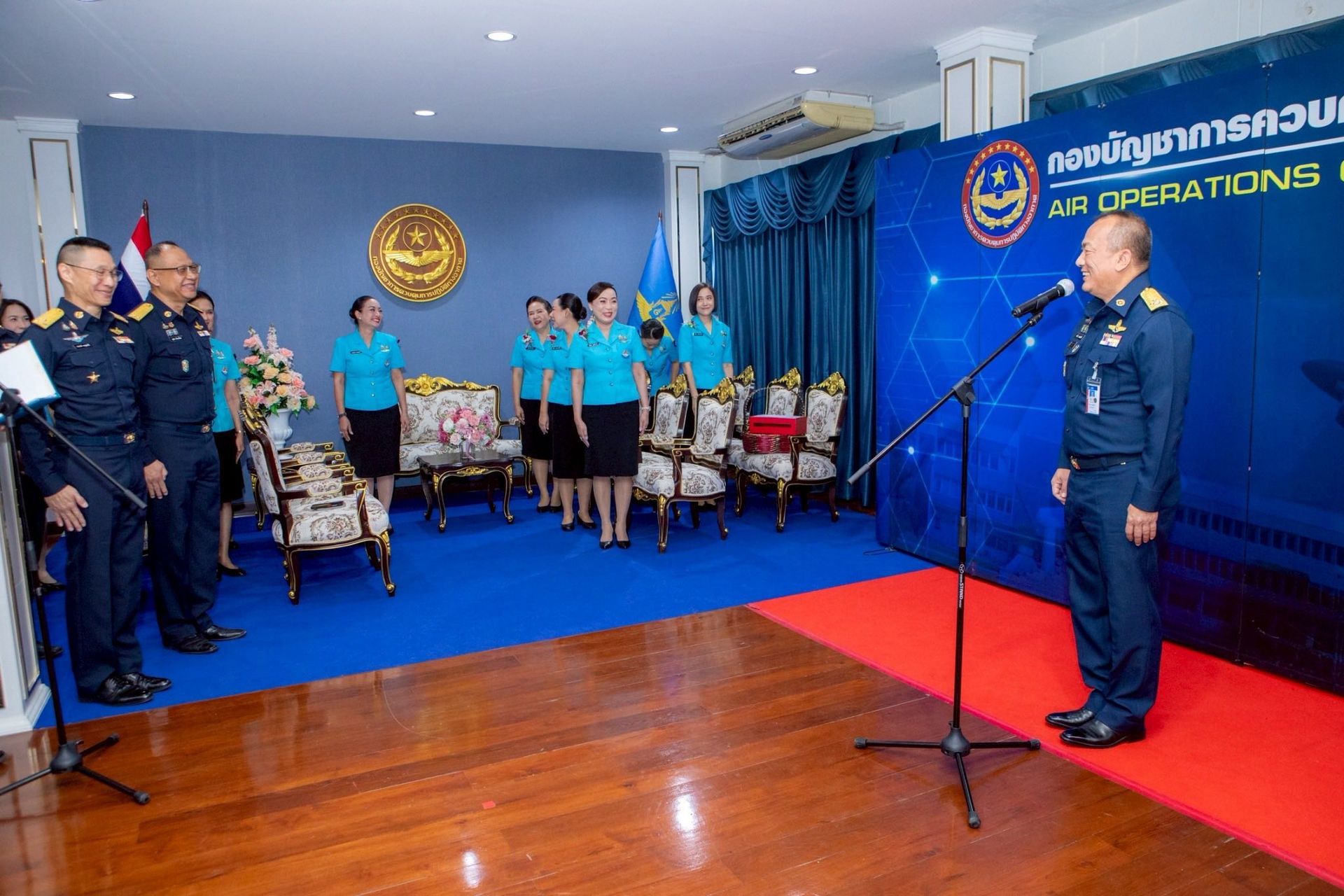 พลอากาศเอก ระวิน ถนอมสิงห์ ผู้บัญชาการกองบัญชาการควบคุมการปฏิบัติทางอากาศ พร้อมภริยา ผู้บังคับบัญชาระดับสูง หัวหน้าหน่วยขึ้น และคณะคู่สมรส กองบัญชาการควบคุมการปฏิบัติทางอากาศ ร่วมมอบเงินสนับสนุน จัดซื้อดอกไม้ที่ระลึกวันทหารผ่านศึก ประจำปี 2569 โดยมี คุณยุพดี เมืองน้อย อุปนายกสมาคมคู่สมรสทหารอากาศ พร้อมด้วย คณะกรรมการบริหารสมาคมฯ เข้าจำหน่ายดอกไม้ที่ระลึกฯ เพื่อสนับสนุนการดูแลทหารผ่านศึกและครอบครัวให้มีคุณภาพชีวิตที่เหมาะสม ตลอดจนเป็นการรำลึกถึงคุณงามความดี และวีรกรรมของเหล่าทหารที่ทำให้เราอยู่กันอย่างสงบสุขบนผืนแผ่นดินไทย เมื่อวันที่ 28 มกราคม 2569 ณ ห้องรับรอง กองบัญชาการควบคุมการปฏิบัติทางอากาศ
