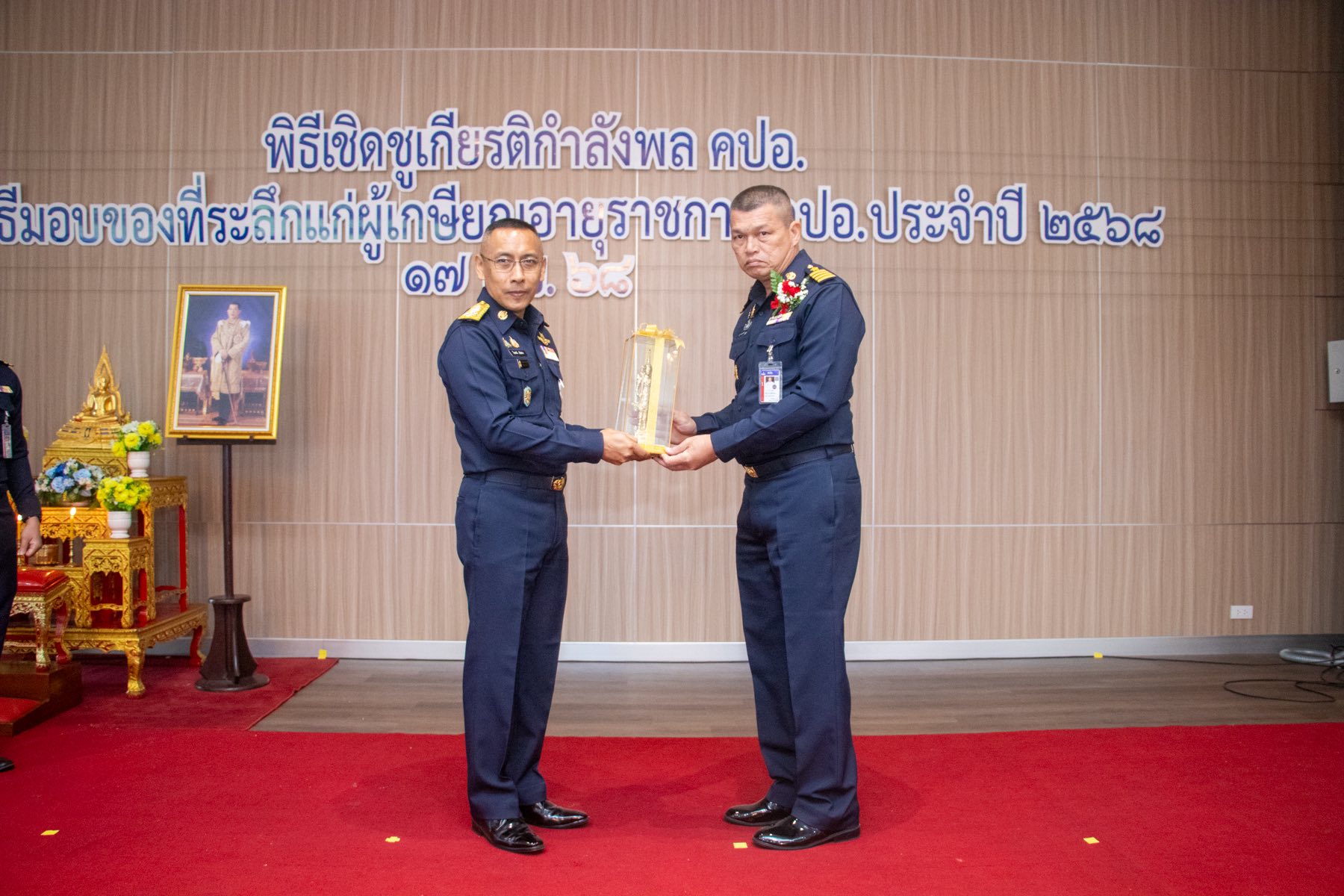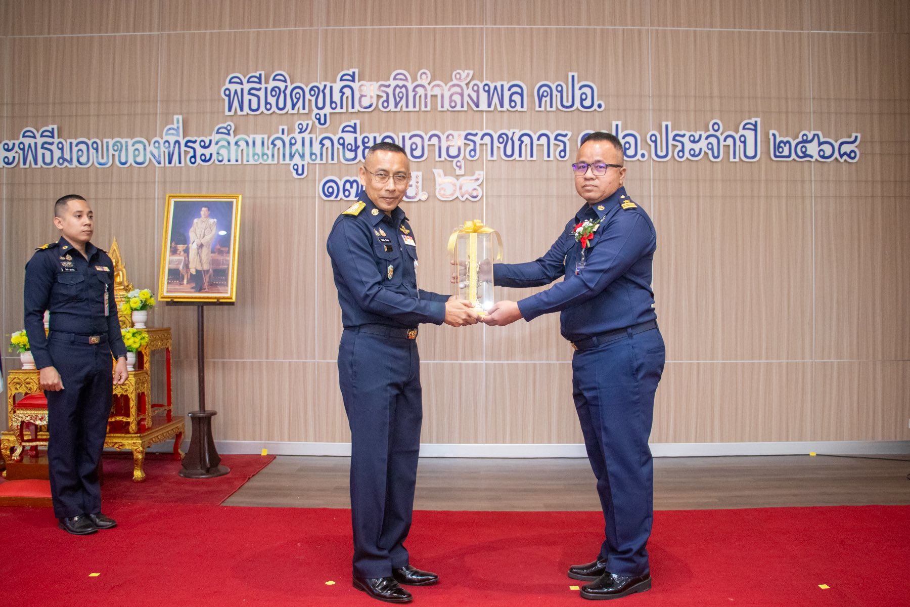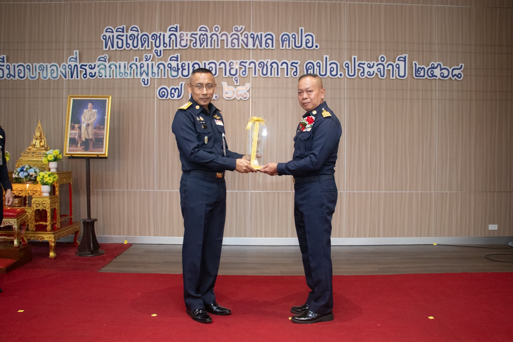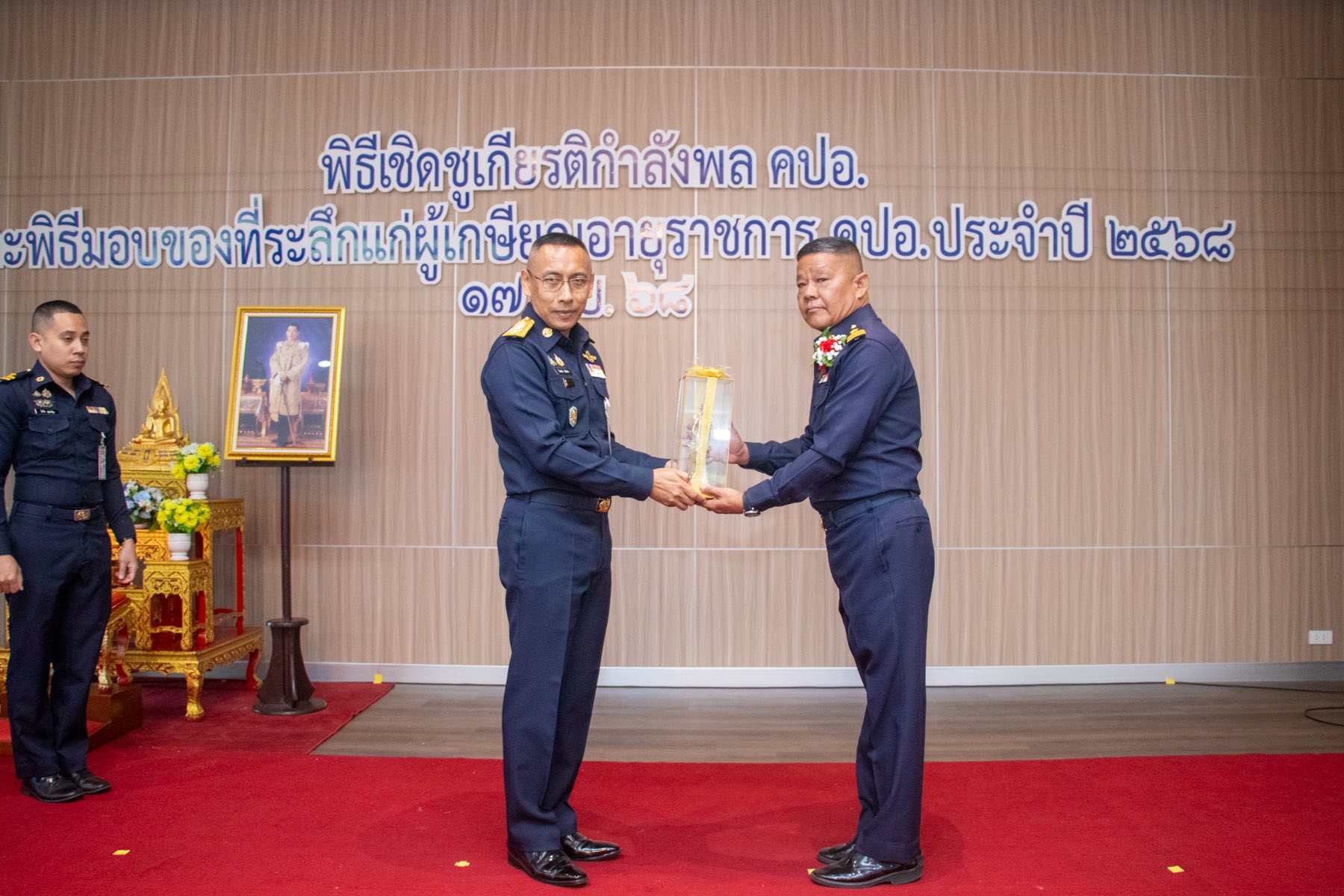 พลอากาศเอก ไวพจน์ เกิงฝาก ผู้บัญชาการกองบัญชาการควบคุมการปฏิบัติทางอากาศ เป็นประธานในพิธีมอบของที่ระลึกแก่ผู้เกษียณอายุราชการ ประจำปี 2568 เพื่อเป็นการตอบแทนคุณงามความดี ยกย่อง และเป็นเกียรติ แก่ผู้ที่ได้ปฏิบัติหน้าที่ราชการมาด้วยความวิริยะ อุตสาหะ จนถึงวันครบกําหนดเกษียณอายุ โดยมี ผู้บังคับบัญชาระดับสูง หัวหน้าหน่วยขึ้นตรง ร่วมเป็นเกียรติในพิธีฯ โดยในปีนี้ มีผู้เกษียณอายุราชการ จำนวนทั้งสิ้น 36 คน เป็นนายทหารสัญญาบัตร 28 คน ลูกจ้างประจำ 1 คน พนักงานราชการ 7 คน และร่วมโครงการเกษียณฯก่อนกำหนด จำนวน 11 คน เมื่อวันที่ 17 กันยายน 2568 ณ อาคารอเนกประสงค์ คปอ.กองบัญชาการควบคุมการปฏิบัติทางอากาศ ขอขอบคุณกำลังพลทุกท่านที่ปฏิบัติหน้าที่ด้วยความมุ่งมั่น ตั้งใจ ทุ่มเท และเสียสละ อย่างเต็มกำลังความสามารถ จนครบวาระเกษียณอายุราชการ และขอให้ช่วยเป็นกำลังใจในการสร้างเสริมและพัฒนาหน่วยงานของเราให้แข็งแกร่งมั่นคงยิ่งขึ้น เพื่อพิทักษ์รักษาสถาบันชาติศาสนา และพระมหากษัตริย์ อันเป็นที่รักและเทิดทูนยิ่ง ของพวกเราทุกคนไว้ตลอดไป