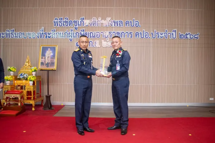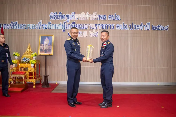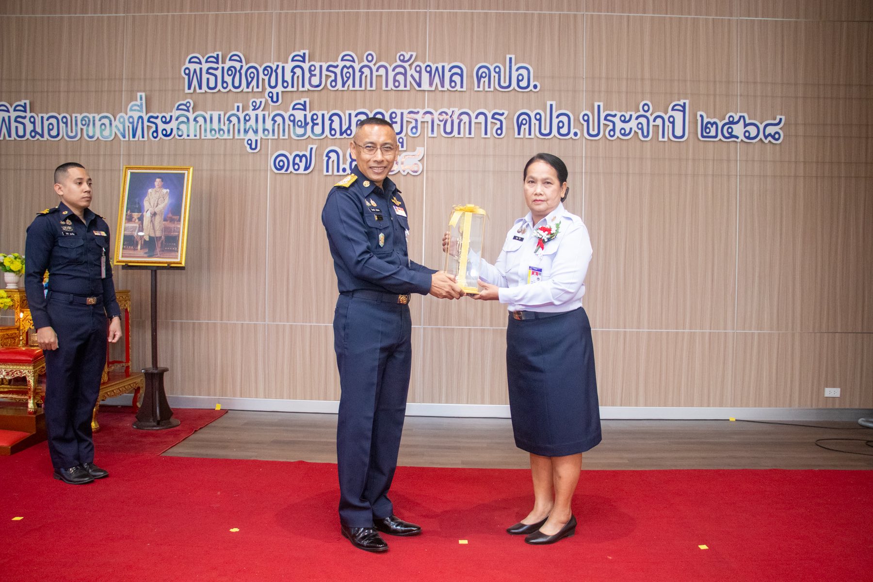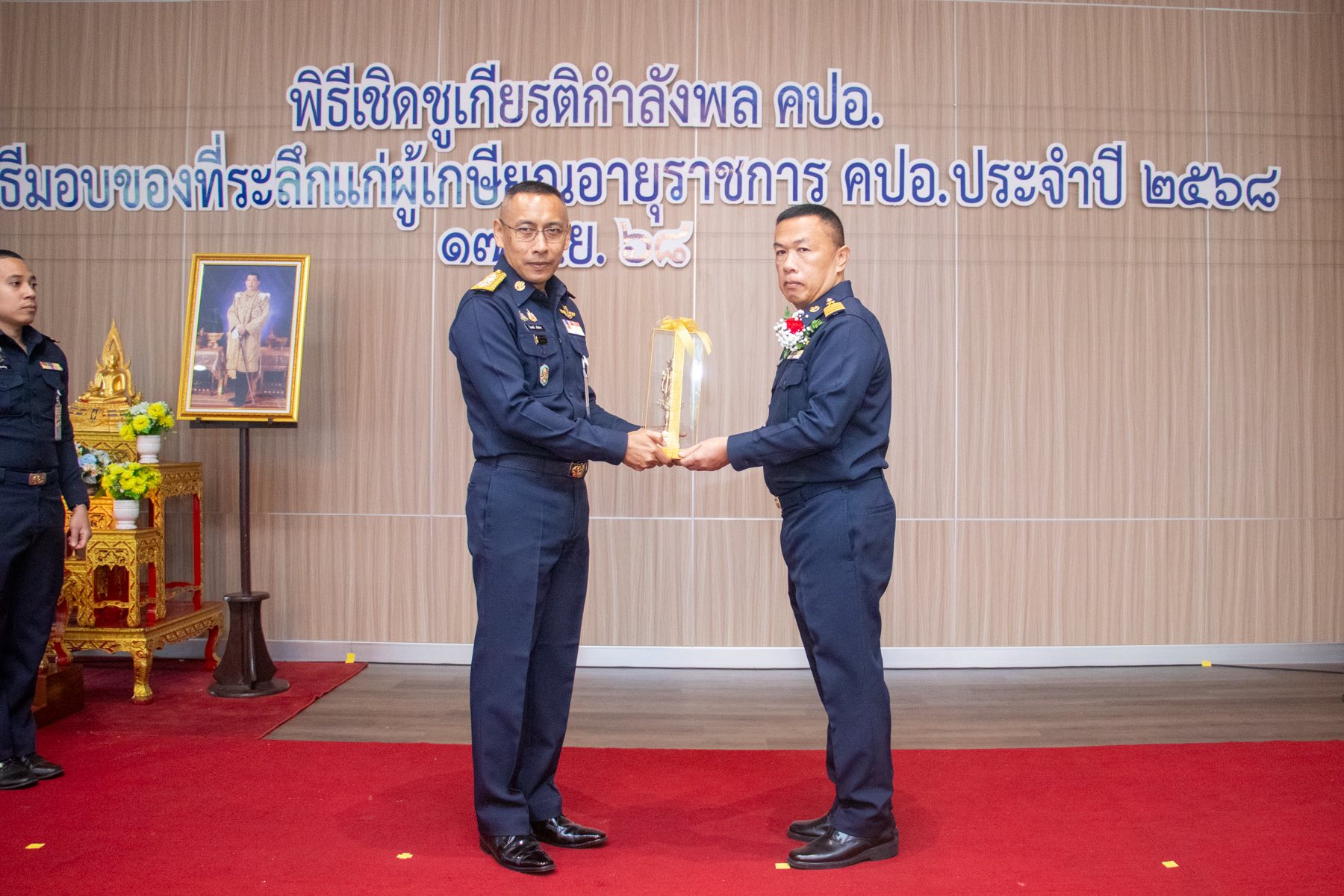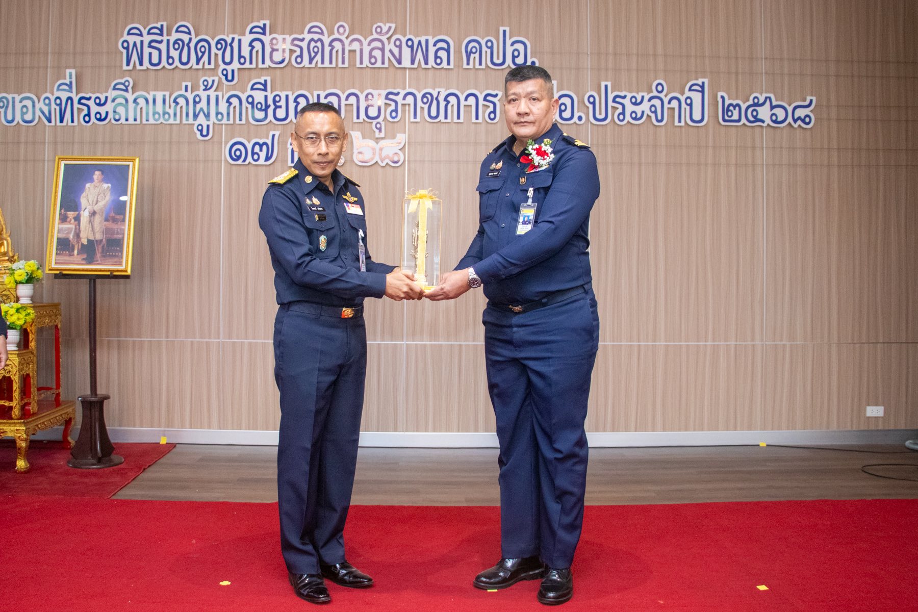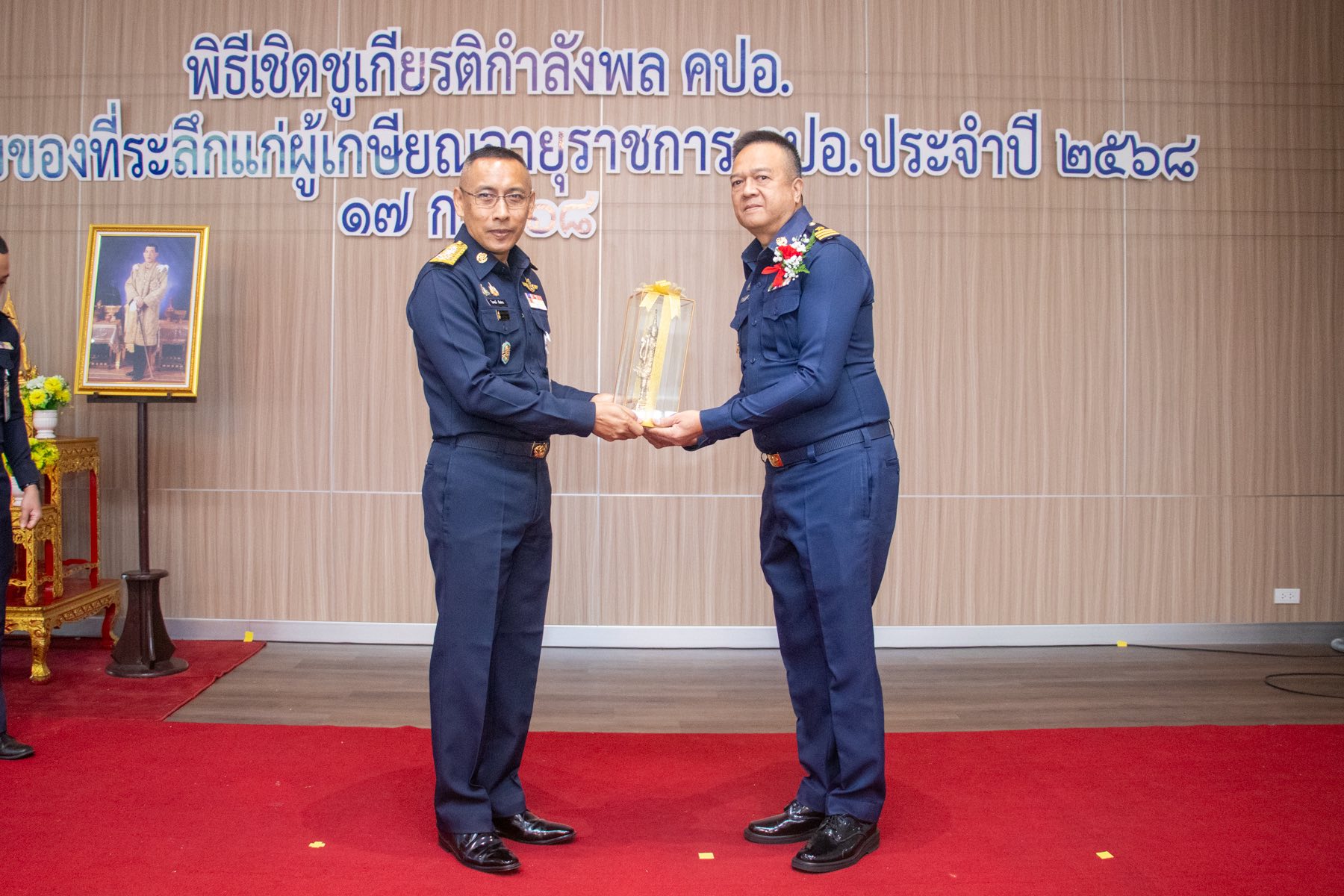 พลอากาศเอก ไวพจน์ เกิงฝาก ผู้บัญชาการกองบัญชาการควบคุมการปฏิบัติทางอากาศ เป็นประธานในพิธีมอบของที่ระลึกแก่ผู้เกษียณอายุราชการ ประจำปี 2568 เพื่อเป็นการตอบแทนคุณงามความดี ยกย่อง และเป็นเกียรติ แก่ผู้ที่ได้ปฏิบัติหน้าที่ราชการมาด้วยความวิริยะ อุตสาหะ จนถึงวันครบกําหนดเกษียณอายุ โดยมี ผู้บังคับบัญชาระดับสูง หัวหน้าหน่วยขึ้นตรง ร่วมเป็นเกียรติในพิธีฯ โดยในปีนี้ มีผู้เกษียณอายุราชการ จำนวนทั้งสิ้น 36 คน เป็นนายทหารสัญญาบัตร 28 คน ลูกจ้างประจำ 1 คน พนักงานราชการ 7 คน และร่วมโครงการเกษียณฯก่อนกำหนด จำนวน 11 คน เมื่อวันที่ 17 กันยายน 2568 ณ อาคารอเนกประสงค์ คปอ.กองบัญชาการควบคุมการปฏิบัติทางอากาศ ขอขอบคุณกำลังพลทุกท่านที่ปฏิบัติหน้าที่ด้วยความมุ่งมั่น ตั้งใจ ทุ่มเท และเสียสละ อย่างเต็มกำลังความสามารถ จนครบวาระเกษียณอายุราชการ และขอให้ช่วยเป็นกำลังใจในการสร้างเสริมและพัฒนาหน่วยงานของเราให้แข็งแกร่งมั่นคงยิ่งขึ้น เพื่อพิทักษ์รักษาสถาบันชาติศาสนา และพระมหากษัตริย์ อันเป็นที่รักและเทิดทูนยิ่ง ของพวกเราทุกคนไว้ตลอดไป