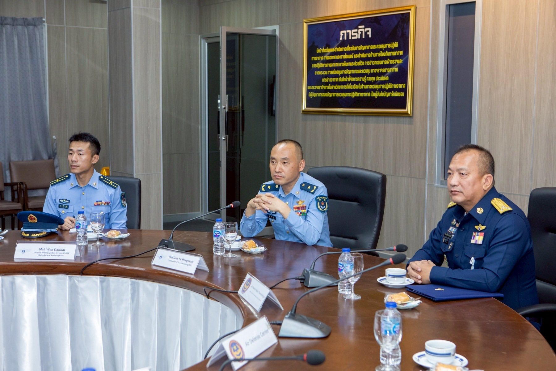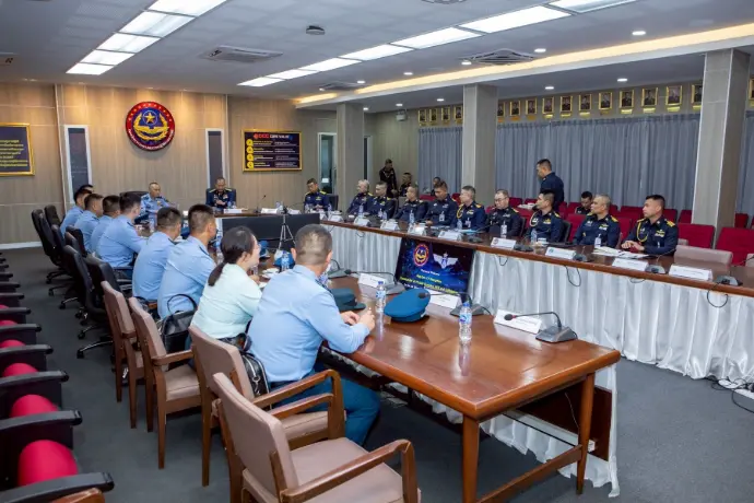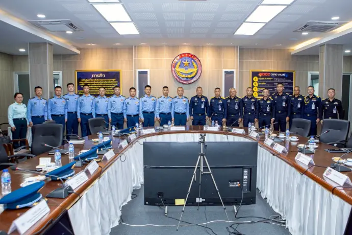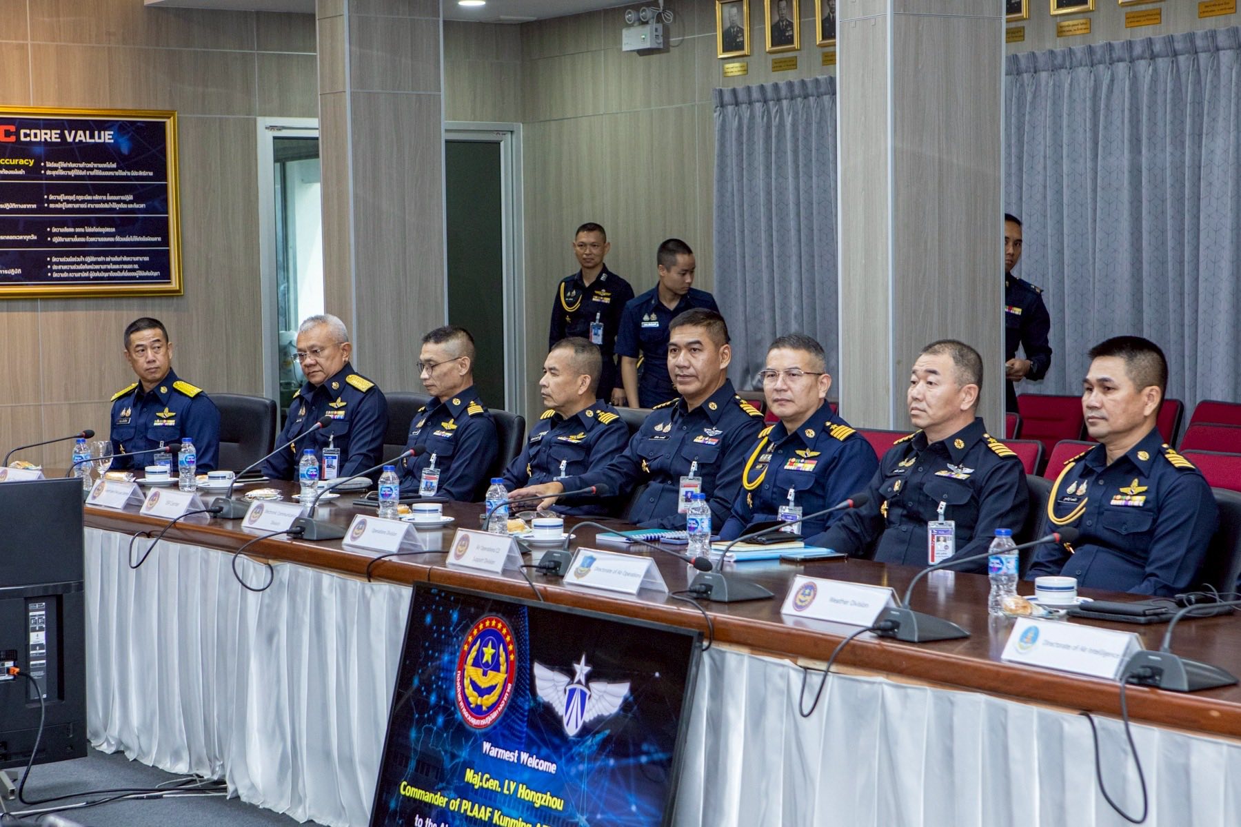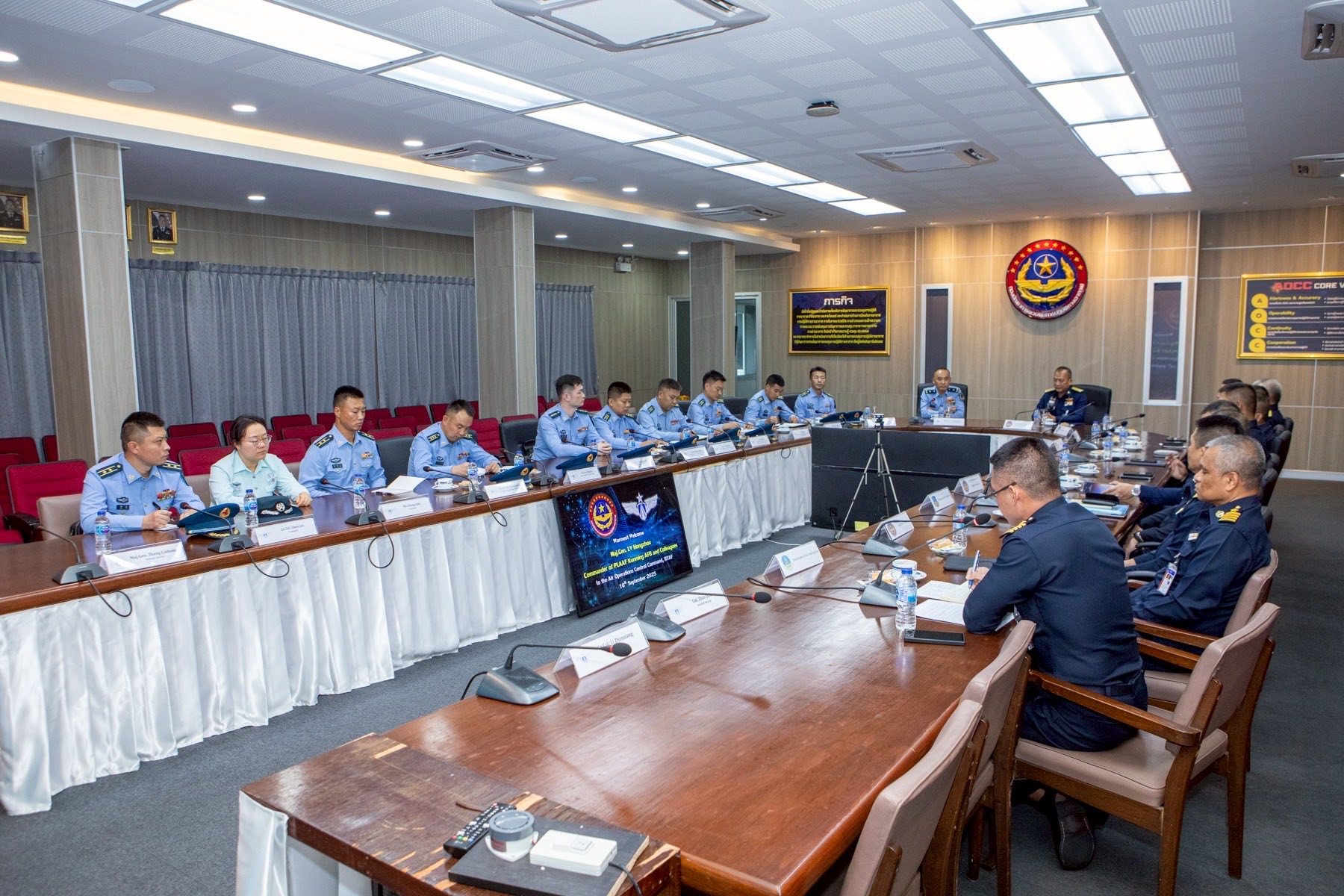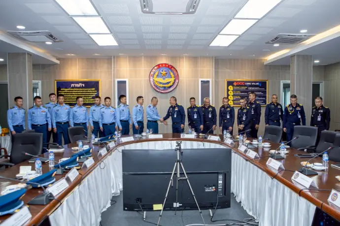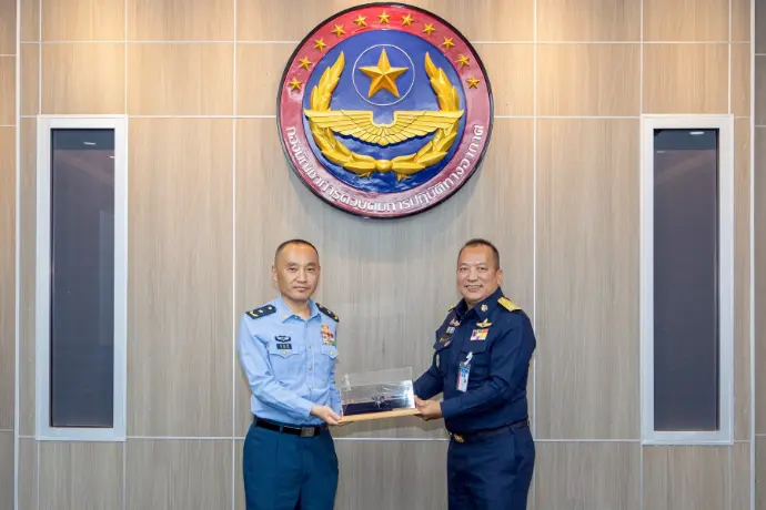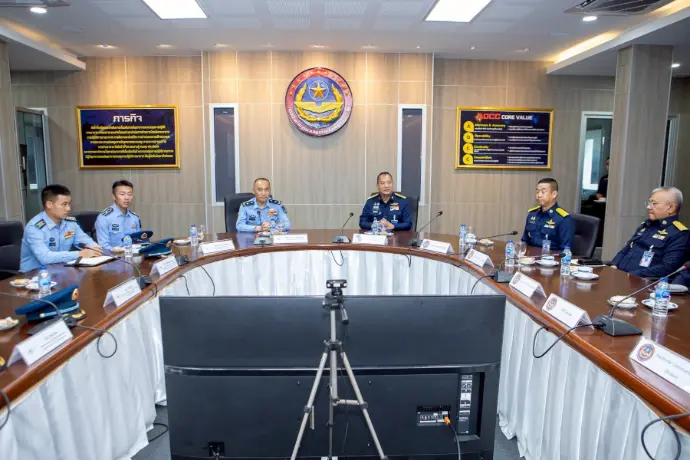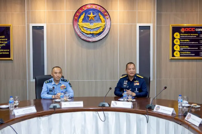 พลอากาศโท ระวิน ถนอมสิงห์ เสนาธิการ กองบัญชาการควบคุมการปฏิบัติทางอากาศ พร้อมด้วยผู้บังคับบัญชาระดับสูง ให้การต้อนรับ พลอากาศตรี หลู่ หง โจว (Maj.Gen. Lv Hongzhou) ผู้บังคับการฐานทัพอากาศคุนหมิง กองทัพอากาศแห่งสาธารณรัฐประชาชนจีน และคณะ ในโอกาสเยี่ยมชมกิจการกองบัญชาการควบคุมการปฏิบัติทางอากาศ โดยคณะฯ ได้รับฟังวิดีทัศน์บรรยายสรุปการปฏิบัติภารกิจของ คปอ.เมื่อวันที่ 16 กันยายน 2568 ณ กองบัญชาการควบคุมการปฏิบัติทางอากาศ