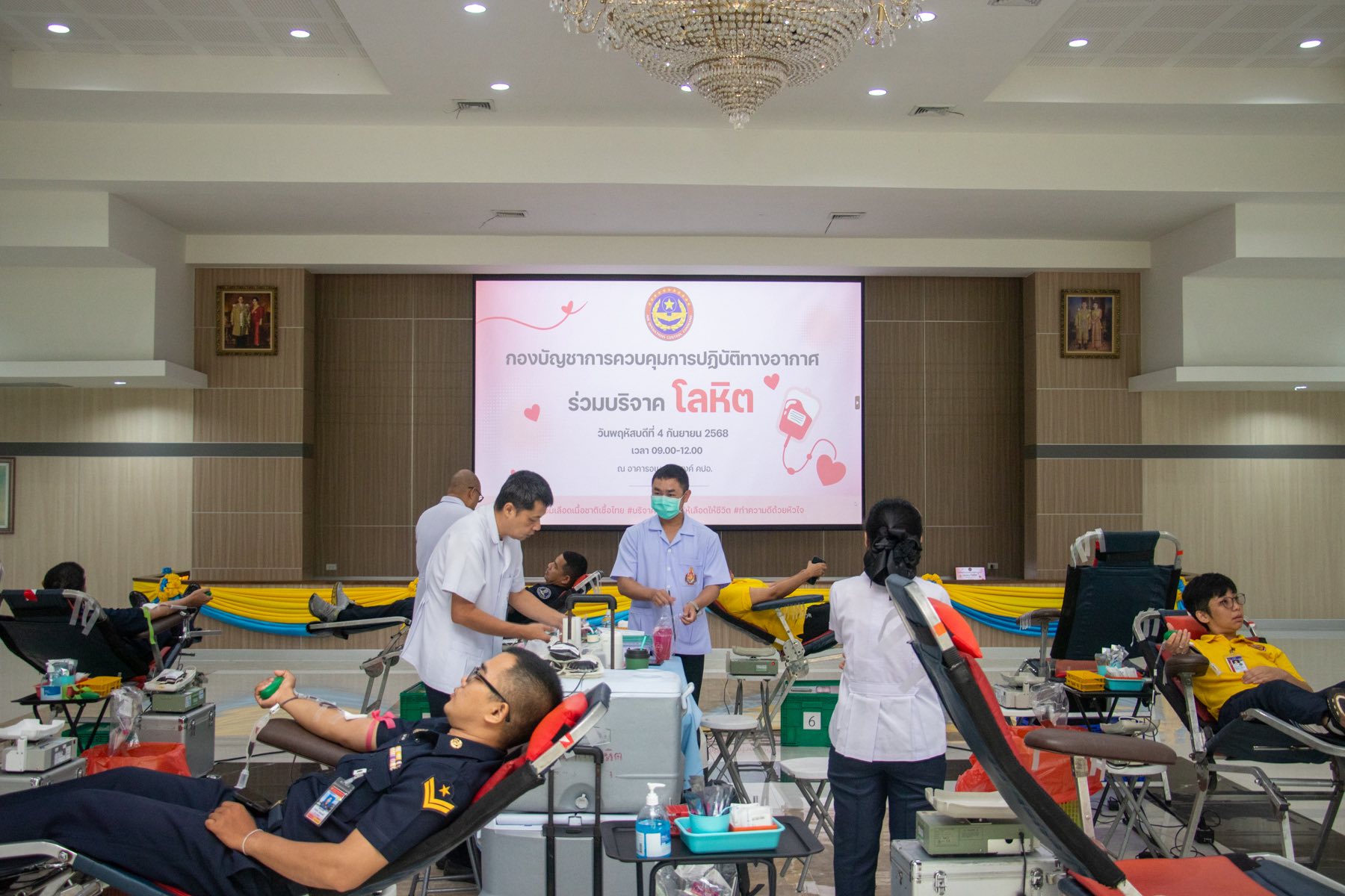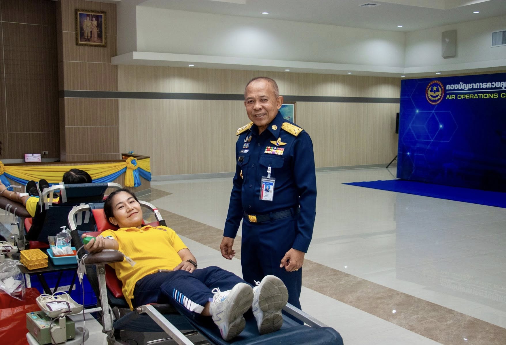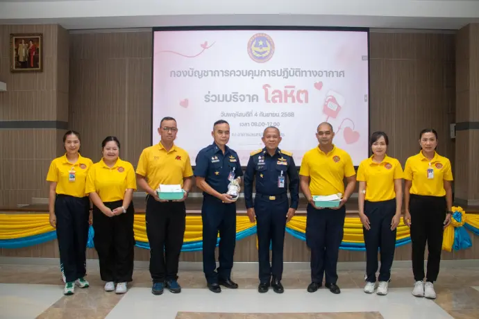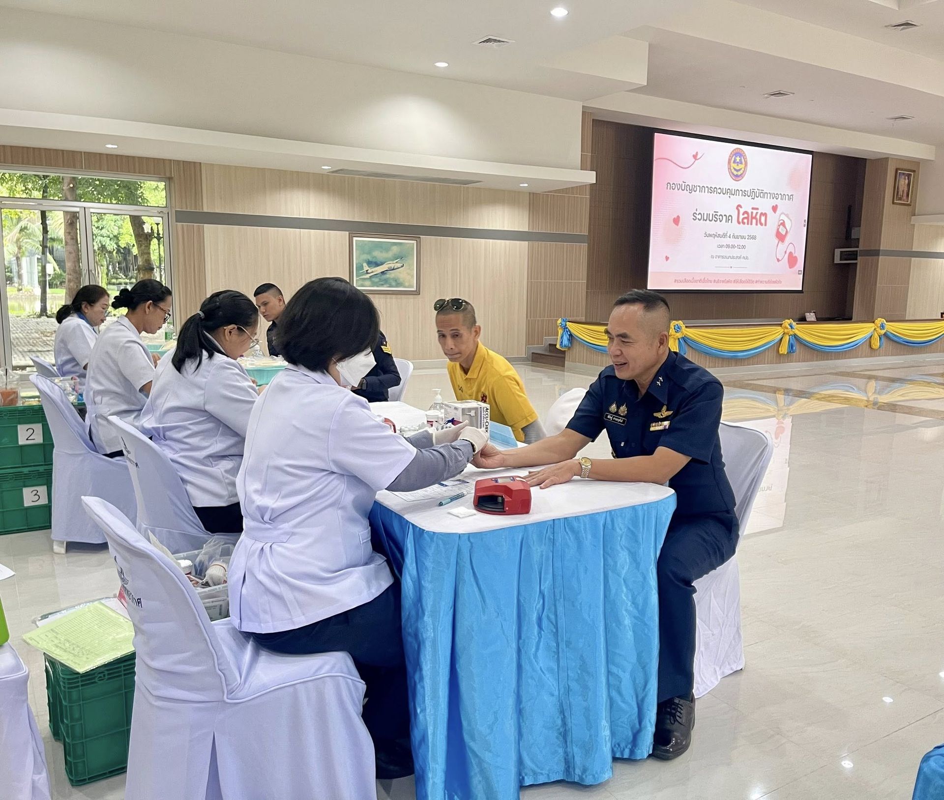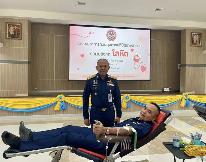 พลอากาศโท ชาตินนท์ สท้านไผท รองผู้บัญชาการ กองบัญชาการควบคุมการปฏิบัติทางอากาศ เยี่ยมและให้กำลังใจผู้บริจาคโลหิต โดยมี พลอากาศตรี พิสิษฐ์ ด่านอนุพันธ์ ผู้บัญชาการศูนย์ค้นหาและช่วยชีวิต กองบัญชาการควบคุมการปฏิบัติทางอากาศ พร้อมด้วยข้าราชการ ลูกจ้าง และพนักงานราชการ พร้อมใจกันร่วมบริจาคโลหิต เพื่อส่งต่อความหวังและชีวิตใหม่ ให้เลือด ให้ชีวิต เพื่อนมนุษย์ ณ อาคารอเนกประสงค์ คปอ. เมื่อวันที่ 4 กันยายน 2568