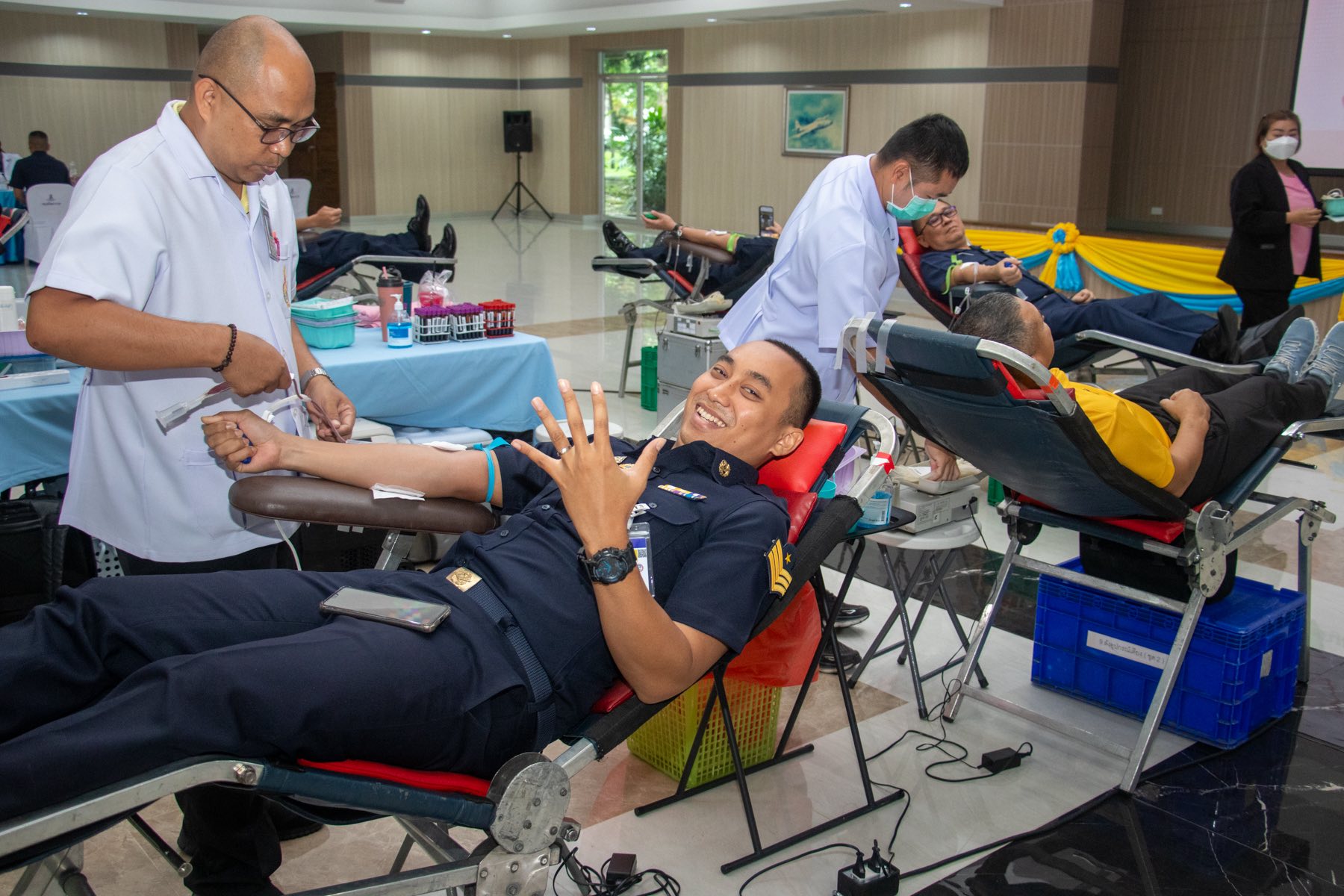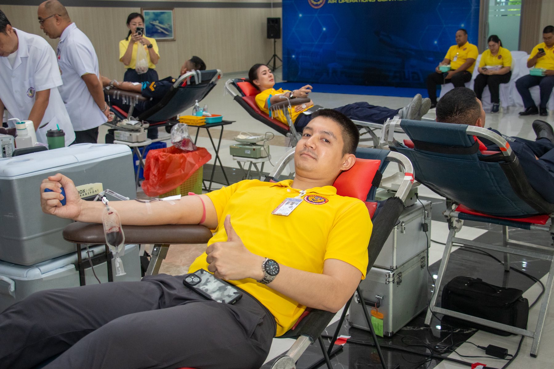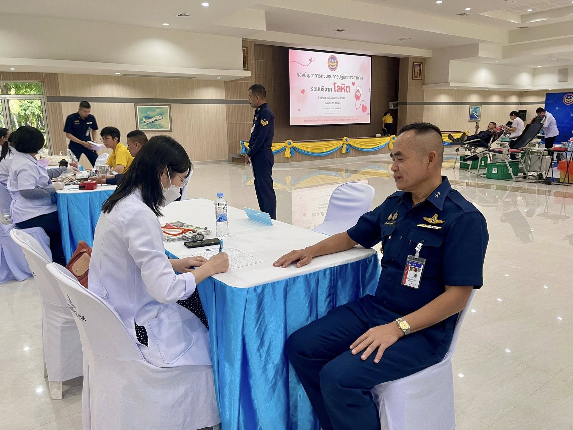 พลอากาศโท ชาตินนท์ สท้านไผท รองผู้บัญชาการ กองบัญชาการควบคุมการปฏิบัติทางอากาศ เยี่ยมและให้กำลังใจผู้บริจาคโลหิต โดยมี พลอากาศตรี พิสิษฐ์ ด่านอนุพันธ์ ผู้บัญชาการศูนย์ค้นหาและช่วยชีวิต กองบัญชาการควบคุมการปฏิบัติทางอากาศ พร้อมด้วยข้าราชการ ลูกจ้าง และพนักงานราชการ พร้อมใจกันร่วมบริจาคโลหิต เพื่อส่งต่อความหวังและชีวิตใหม่ ให้เลือด ให้ชีวิต เพื่อนมนุษย์ ณ อาคารอเนกประสงค์ คปอ. เมื่อวันที่ 4 กันยายน 2568