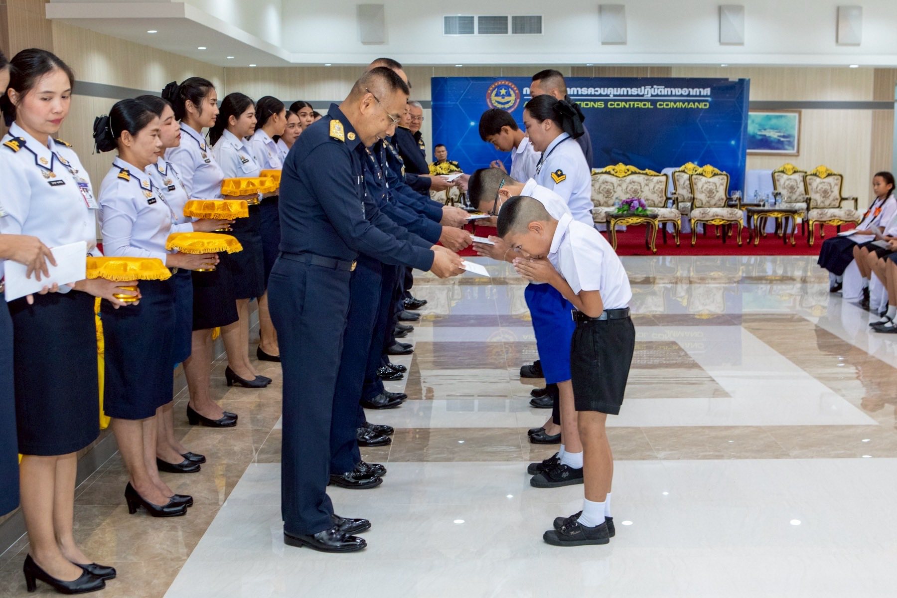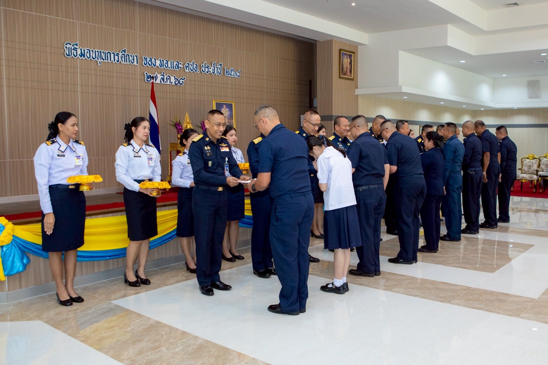 พลอากาศเอก ไวพจน์ เกิงฝาก ผู้บัญชาการกองบัญชาการควบคุมการปฏิบัติทางอากาศ เป็นประธานมอบทุนการศึกษา ประจำปี 2568 ให้แก่บุตรข้าราชการ ลูกจ้าง และพนักงานราชการ กองบัญชาการควบคุมการปฏิบัติทางอากาศ โดยมี ผู้บังคับบัญชาระดับสูง หัวหน้าหน่วยขึ้นตรง กองบัญชาการควบคุมการปฏิบัติทางอากาศ ผู้ปกครอง และผู้รับทุนการศึกษาเข้าร่วมในพิธีฯ ณ อาคารอเนกประสงค์ กองบัญชาการควบคุมการปฏิบัติทางอากาศ