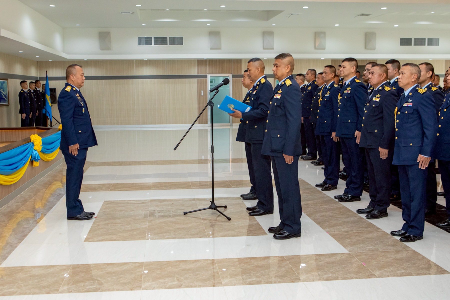 โดยในลำดับแรกได้ประกอบพิธีลงนามในเอกสารรับ-ส่งหน้าที่ผู้บัญชาการกองบัญชาการควบคุมการปฏิบัติทางอากาศ ณ ห้องรับรอง คปอ. จากนั้นได้วางพวงมาลัยสักการะรูปหล่อพระบิดาแห่งกองทัพอากาศ, นมัสการพระพุทธรักษานภานิราศภัย นมัสการพระสยามเทวาธิราช และวางพวงมาลัยอนุสาวรีย์จอมพลอากาศเฉลิมเกียรติ ฯ ลำดับต่อมาได้เดินทางมายังบริเวณพิธีรับ-ส่งหน้าที่ ผู้บัญชาการกองบัญชาการควบคุมการปฏิบัติทางอากาศ ณ อาคารอเนกประสงค์ และขึ้นแท่นรับการเคารพ โดยผู้บัญชาการกองบัญชาการควบคุมการปฏิบัติทางอากาศ ได้กล่าวมอบหน้าที่การบังคับบัญชา ซึ่งมีใจความสำคัญว่า ”ผมขอขอบคุณ ข้าราชการ ลูกจ้าง และพนักงานราชการทุกคน ที่ได้เสียสละ ทุ่มเท แรงกายแรงใจในการปฏิบัติหน้าที่ราชการ ด้วยความวิริยะ อุตสาหะ ส่งผลให้ภารกิจของหน่วยดำเนินไปด้วยความเรียบร้อยประสบความสำเร็จตามความมุ่งหมาย และเชื่อมั่นว่า ผู้บัญชาการกองบัญชาการควบคุมการปฏิบัติทางอากาศท่านใหม่ จะเป็นผู้นำพาหน่วยงานให้มีความเจริญก้าวหน้าต่อไป“ จากนั้นได้ส่งมอบเอกสารรับส่งหน้าที่ รวมทั้งส่งมอบธงประจำหน่วยให้กับผู้บัญชาการกองบัญชาการควบคุมการปฏิบัติทางอากาศ (ท่านใหม่) ต่อมา ผู้บัญชาการกองบัญชาการควบคุมการปฏิบัติทางอากาศ (ท่านใหม่)กล่าวรับมอบหน้าที่และการบังคับบัญชาโดยมีใจความสำคัญว่า ”ผมขอรับหน้าที่ และการบังคับบัญชาสืบต่อจากท่าน และจะสานต่อนโยบาย หลักการและรูปแบบที่ท่านได้วางรากฐานไว้ ให้บังเกิดสัมฤทธิ์ผล และขอให้คำมั่นว่าจะปฏิบัติงานอย่างเต็มขีดความสามารถด้วยความชื่อสัตย์ สุจริต และธำรงไว้ซึ่งคุณธรรรม ตลอดจนยึดมั่นในหลักการและอุดมการณ์เพื่อนำพากองบัญชาการควบคุมการปฏิบัติทางอากาศให้มีความเจริญก้าวหน้าสืบไป“