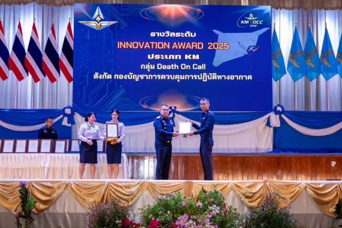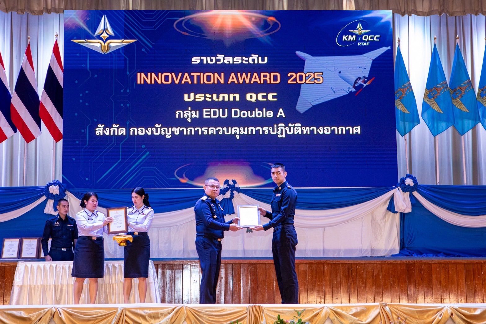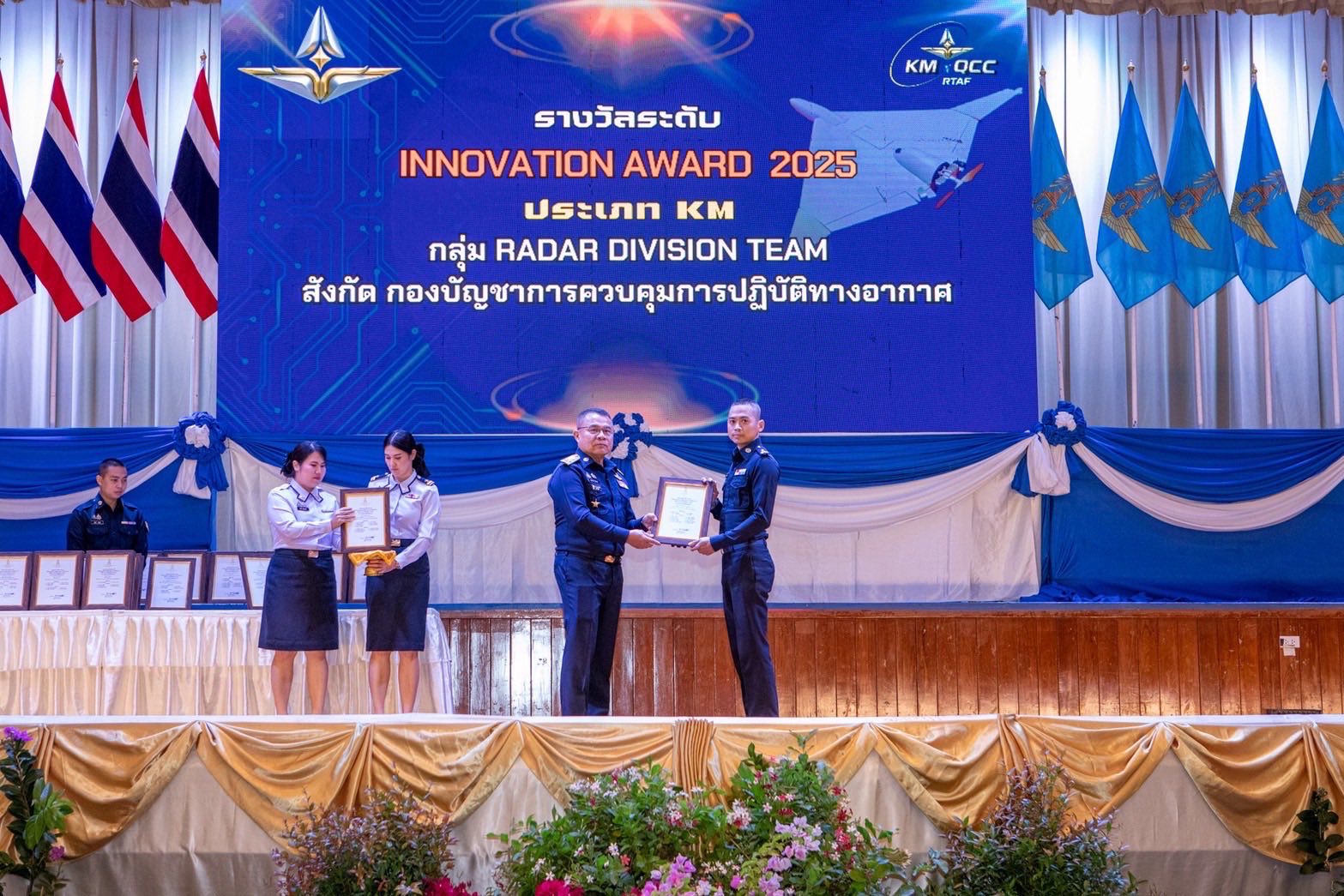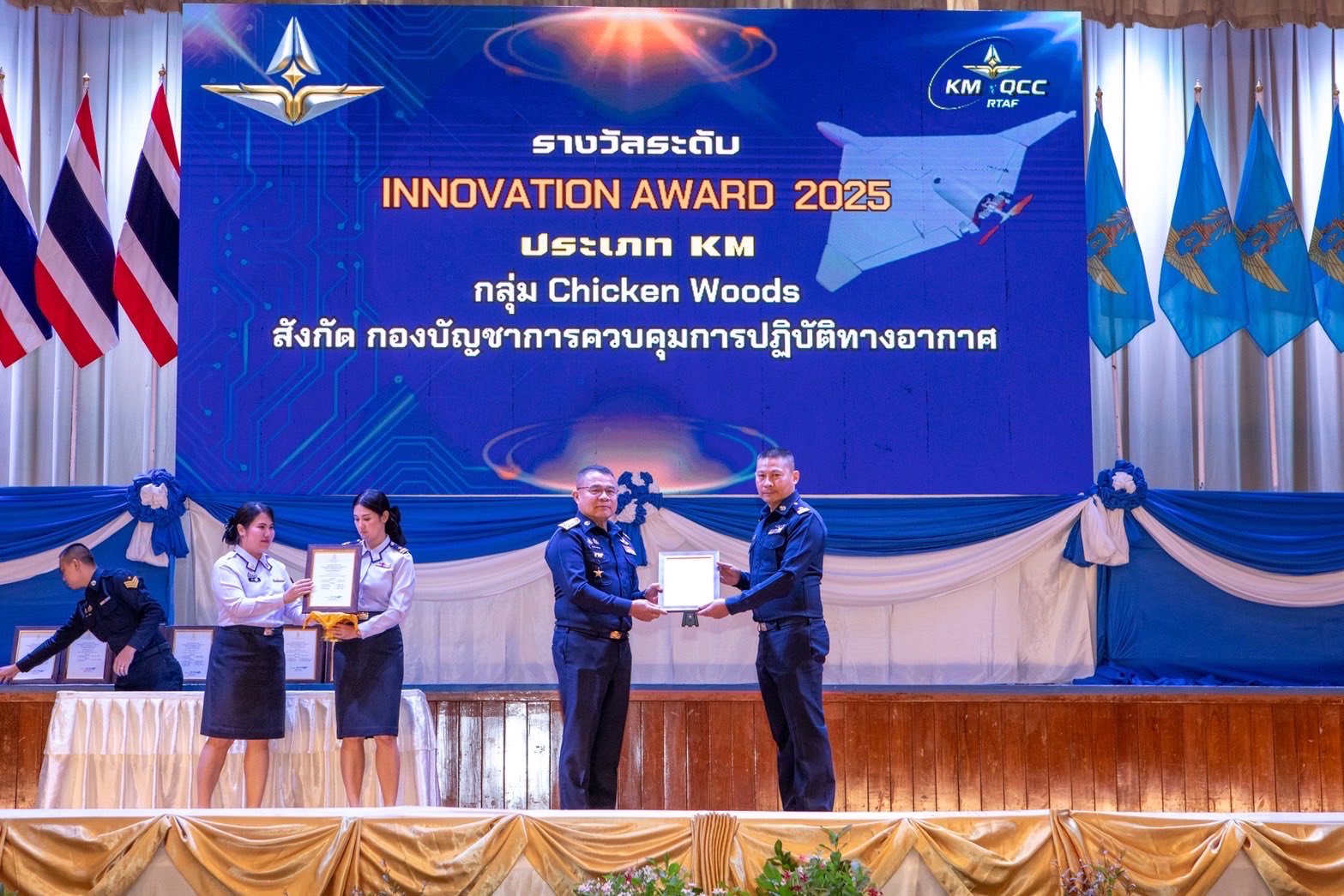 1.2 รางวัล Innovation Award ได้แก่ กลุ่ม Death on Call (ศกป.คปอ.) เรื่องการพัฒนาระบบฐานข้อมูลการปฏิบัติทางอากาศ เพื่อการวางแผนและการใช้กำลังทางอากาศ