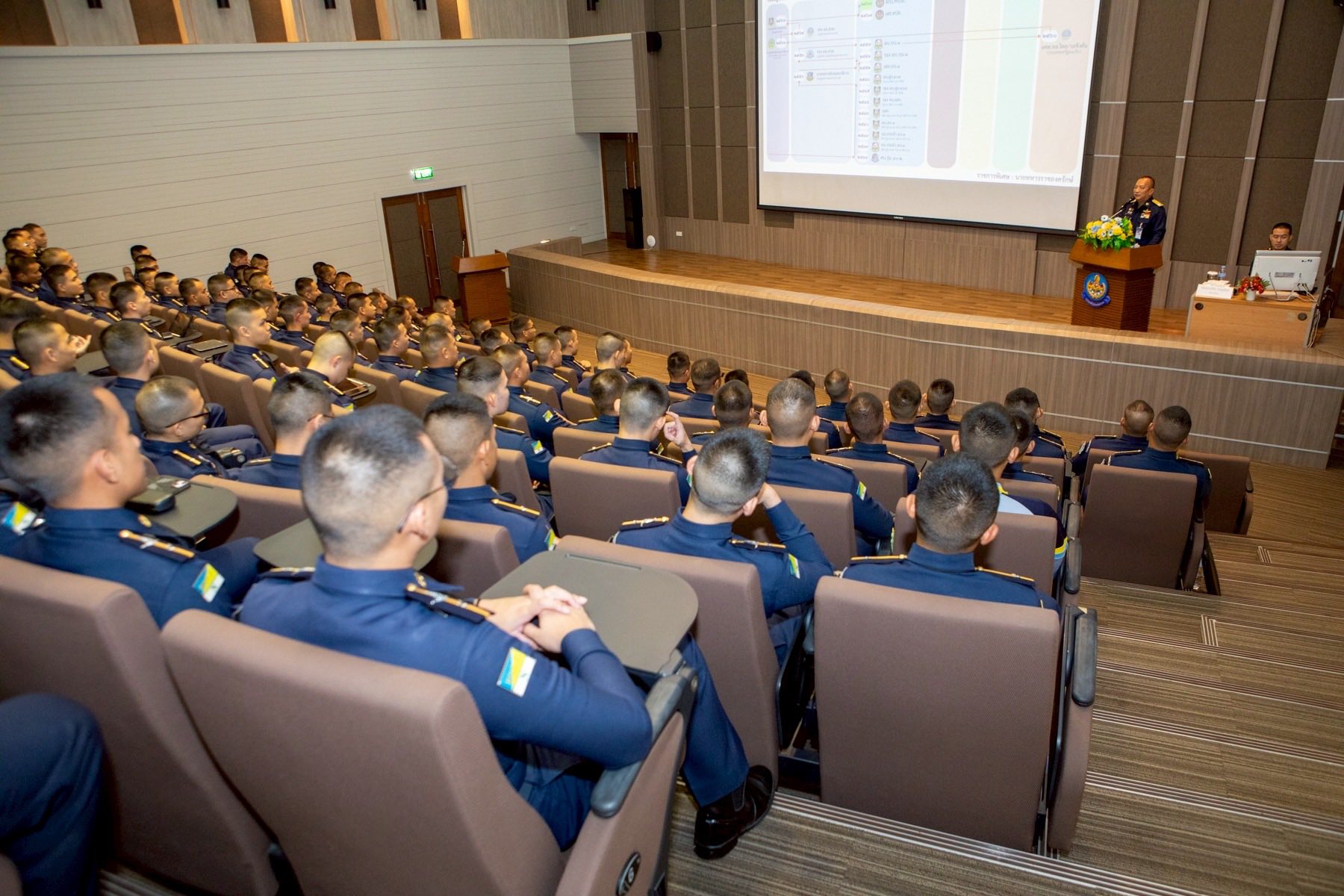 พลอากาศเอก ระวิน ถนอมสิงห์ ผู้บัญชาการกองบัญชาการควบคุมการปฏิบัติทางอากาศ ได้รับเกียรติให้บรรยายพิเศษในหัวข้อ “ประสบการณ์ในการทำงานและแนวทางในการปฏิบัติราชการ” โดยได้ถ่ายทอดประสบการณ์ในการทำงานตั้งแต่อดีตจนถึงปัจจุบัน รวมถึงให้ข้อคิด ข้อเตือนใจในการเป็นข้าราชการที่ดี ให้แก่นักเรียนนายเรืออากาศ ชั้นปีที่ 5 เพื่อเตรียมความพร้อมในการรับราชการเป็นนายทหารสัญญาบัตรของกองทัพอากาศ ณ ห้องประชุมหอสมุดกองทัพอากาศ (ชั้น 1) เมื่อวันที่ 6 พฤศจิกายน 2568