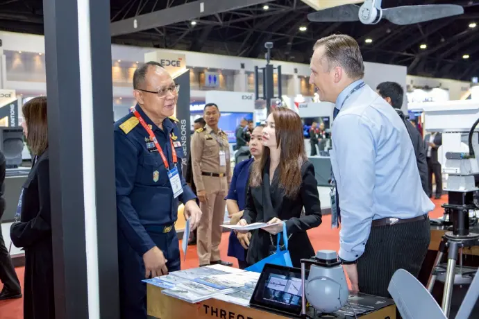 พลอากาศเอก ระวิน ถนอมสิงห์ ผู้บัญชาการ กองบัญชาการควบคุมการปฏิบัติทางอากาศ พร้อมด้วยผู้บังคับบัญชาระดับสูงของกองบัญชาการควบคุมการปฏิบัติทางอากาศร่วมงาน Defense & Security 2025 (ดีเฟนส์แอนด์ซิคิวริตี้ 2025) ในการนี้ได้เยี่ยมชมการจัดแสดงนวัตกรรมและเทคโนโลยีด้านความมั่นคงล้ำสมัยจากบริษัทชั้นนำทั่วโลก อาทิ ปืนกล ขีปนาวุธ รถถัง อาวุธนำวิถี ยานยนต์ทางทหาร เครื่องบินรบ เรือเดินทะเล เรือดำน้ำ ดาวเทียม และอากาศยานไร้คนขับ (UAVs) ตลอดจนระบบสื่อสารโทรคมนาคมและอุปกรณ์ป้องกันทางอิเล็กทรอนิกส์ เพื่อเป็นแนวทางส่งเสริมและพัฒนาขีดความสามารถของหน่วยในภารกิจการป้องกันประเทศและช่วยเหลือประชาชน เมื่อวันที่ 13 พฤศจิกายน 2568 ณ ศูนย์แสดงสินค้าและการประชุม อิมแพ็ค เมืองทองธานี