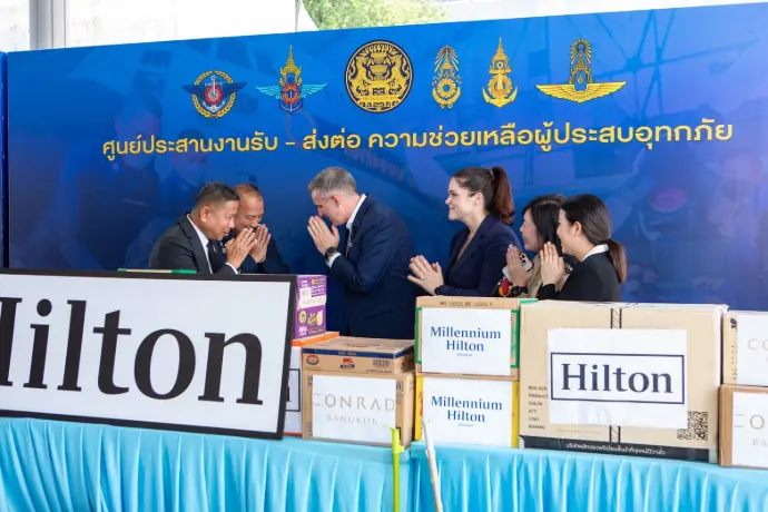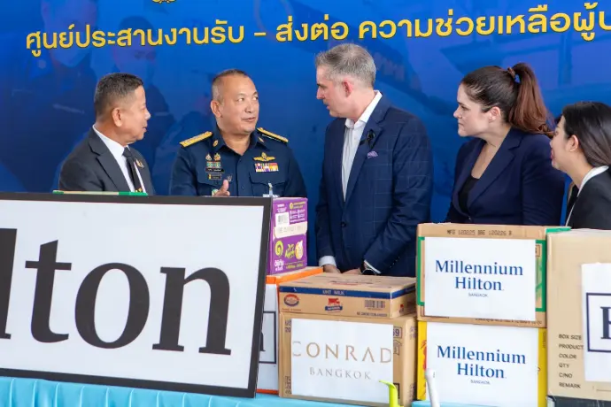 พลอากาศเอก ระวิน ถนอมสิงห์ ผู้บัญชาการกองบัญชาการควบคุมการปฏิบัติทางอากาศ รับมอบเครื่องอุปโภคบริโภค และอุปกรณ์ทำความสะอาด ส่งต่อไปให้ความช่วยเหลือพี่น้องประชาชนและฟื้นฟูพื้นที่ประสบอุทกภัยภาคใต้